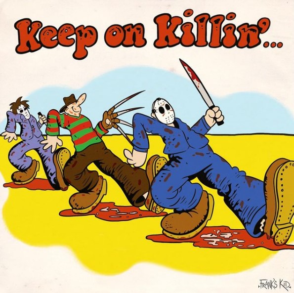 I love this horror villain take on R. Crumb’s “keep on truckin’” by artist Mike Chiechi. You can find him on Instagram @franks_kid.